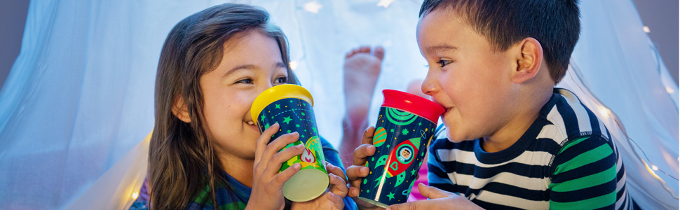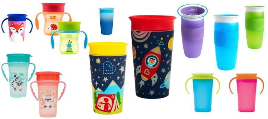 Os copos 360 graus possuem um design inteligente que permite que a criança beba em qualquer ponto da borda, simulando a experiência de beber de um copo convencional. Eles geralmente possuem uma vedação à prova de vazamentos que permite o fluxo do líquido somente quando a criança aplica uma leve pressão nos lábios ou quando há sucção. Esse design encoraja a criança a desenvolver habilidades de controle e coordenação, aprendendo a controlar o fluxo do líquido.